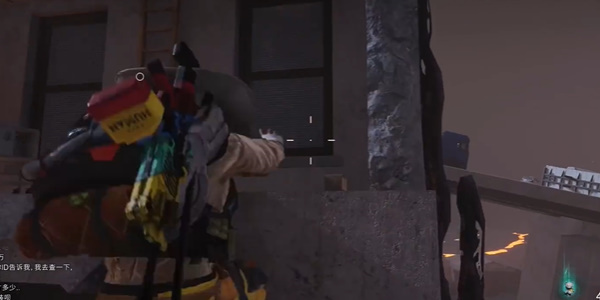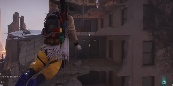 3、从右侧的滑索上到四楼,接着从右侧翻墙爬进去。
