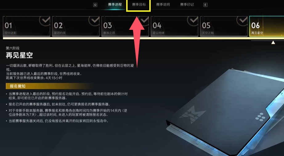 3、进入下图所示页面,点击上方第二个【赛季目标】进入。