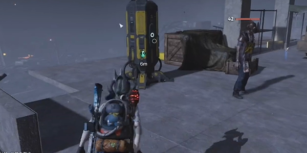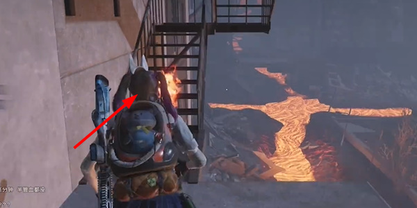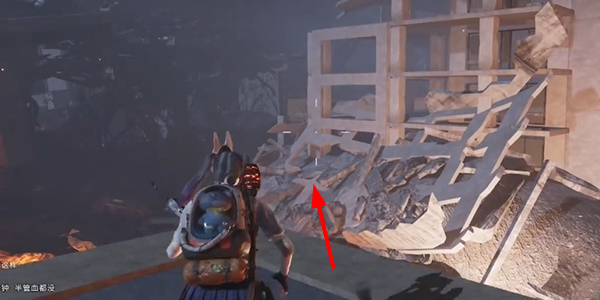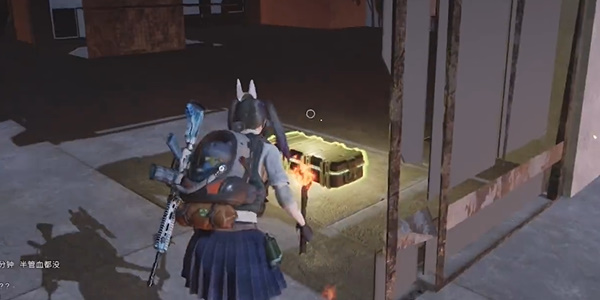 6、上来可以看到地上有个武器箱,然后从旁边的楼梯上去。