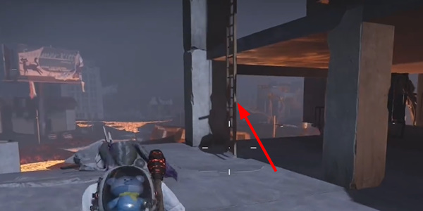 4、过来后,在左边的平台看到一个梯子,直接上楼。