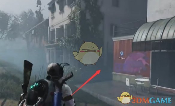 2、抵达后从锚点的位置向西,在如下图所示的房子,夹缝中进入。