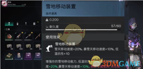 借助雪地移动装置可永久提升20点抗寒能力,也是寒冷区域生存的必备装备。