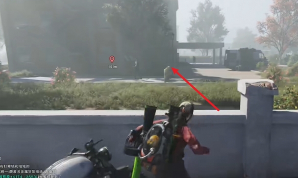 2、接着驾驶摩托向西走,来到这里有围栏的房子的位置步行进入。