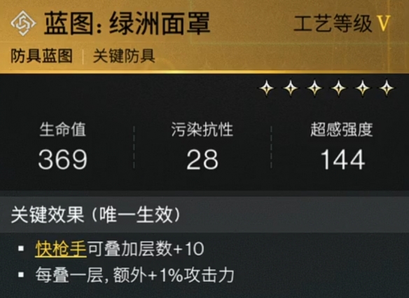 3、专属装备选择绿洲面罩和魔术师上衣,一个可以提供快枪手一个可以在快枪手状态下提供更多的输出。