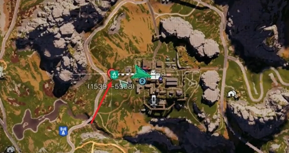6、随后我们继续上车前往坐标(1864.-5978)的位置,在这里可以看到一个血月的球,进入车库即可开启第五个宝箱。
