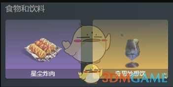 1、食物:推荐使用星尘炸肉,血月期间可使用轮盘饺子或惊喜春卷。