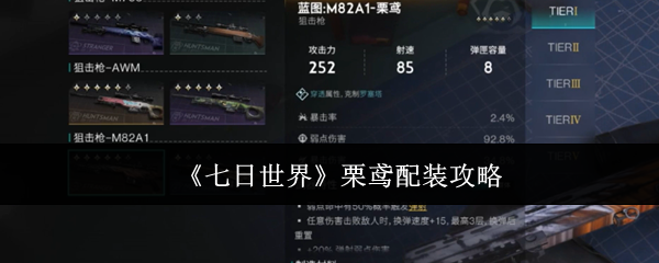 七日世界栗鸢怎么配装?游戏里面的武器种类也是丰富多样。其中一把名为栗鸢的狙击枪,因为其高爆的伤害,深得广大玩家的心。下面,小编为大家介绍下七日世界栗鸢配装怎么出能有高爆的伤害。