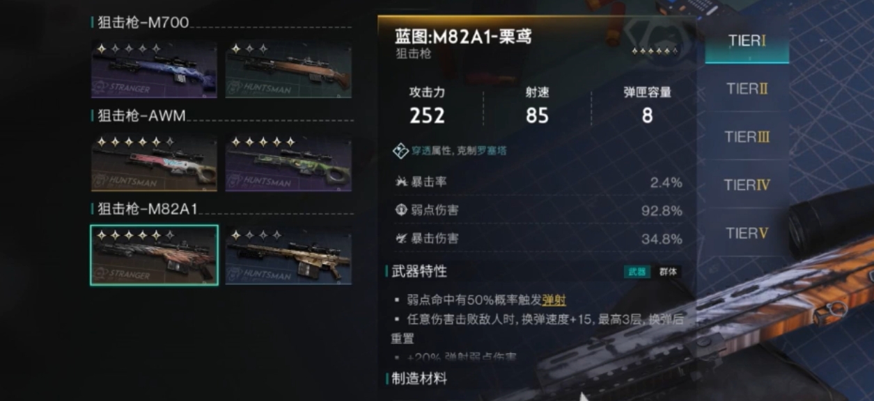 防具可以选择4末土+1孤狼+利刃长裤的组合。末土套装可以在一定程度上增加基础属性和特殊效果,而孤狼可以增加弹容量和暴击率,利刃则能强化伤害。副武器推荐AWM-正中靶心,可以与栗鸢混合搭配打暴击流,栗鸢弹射清怪,正中靶心补刀弹射不到的目标。