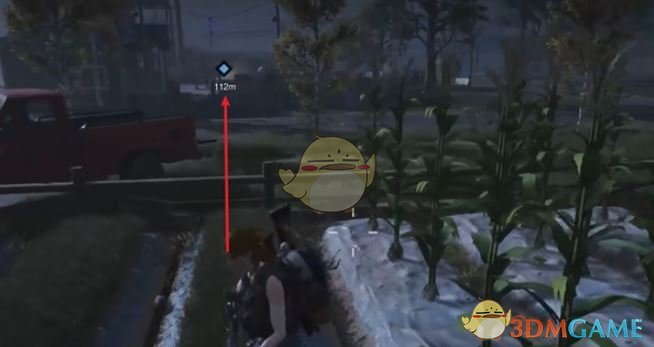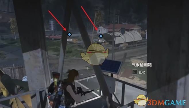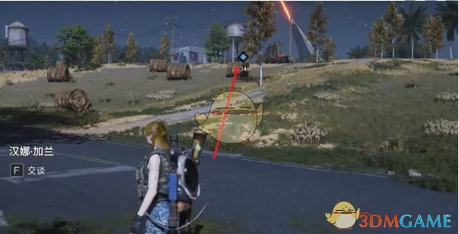 4、追踪任务往箭头方向走,来到水塔下面。