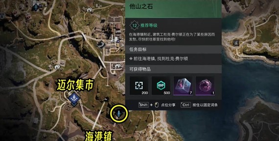 1、首先前往海港镇大概1点钟方向,到达后靠近标记点附近就能直接接取该任务。