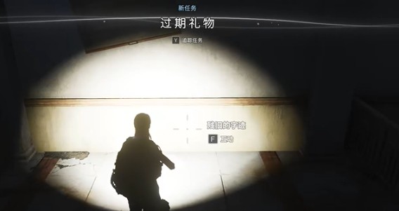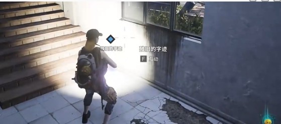 3、原路返回后第一个线索在楼下左侧房间的地上,和地上残旧的字迹互动即可。
