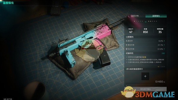 使用多余的蓝图碎片对武器或装备蓝图进行强化使制作出的武器装备强度更高