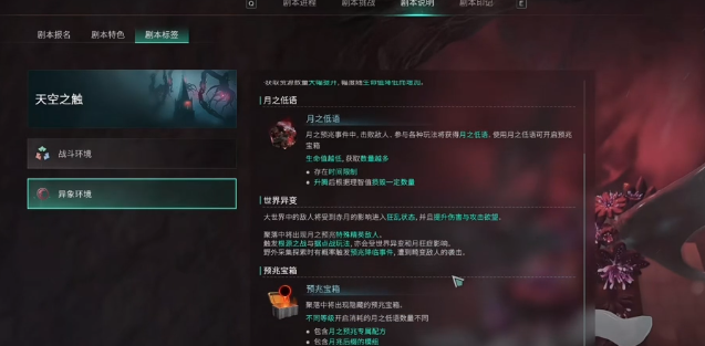 月兆后缀模组在过去的时候会有特定的条件。新手剧本中没有办法获取,玩家要在赛季结束之后,然后去报名一些带有月之预兆标签的剧本。在进入剧本之后就有两种方法获取,一种是开启预兆宝箱,另外一种是击败月之幽影,在成功之后就可以获取。