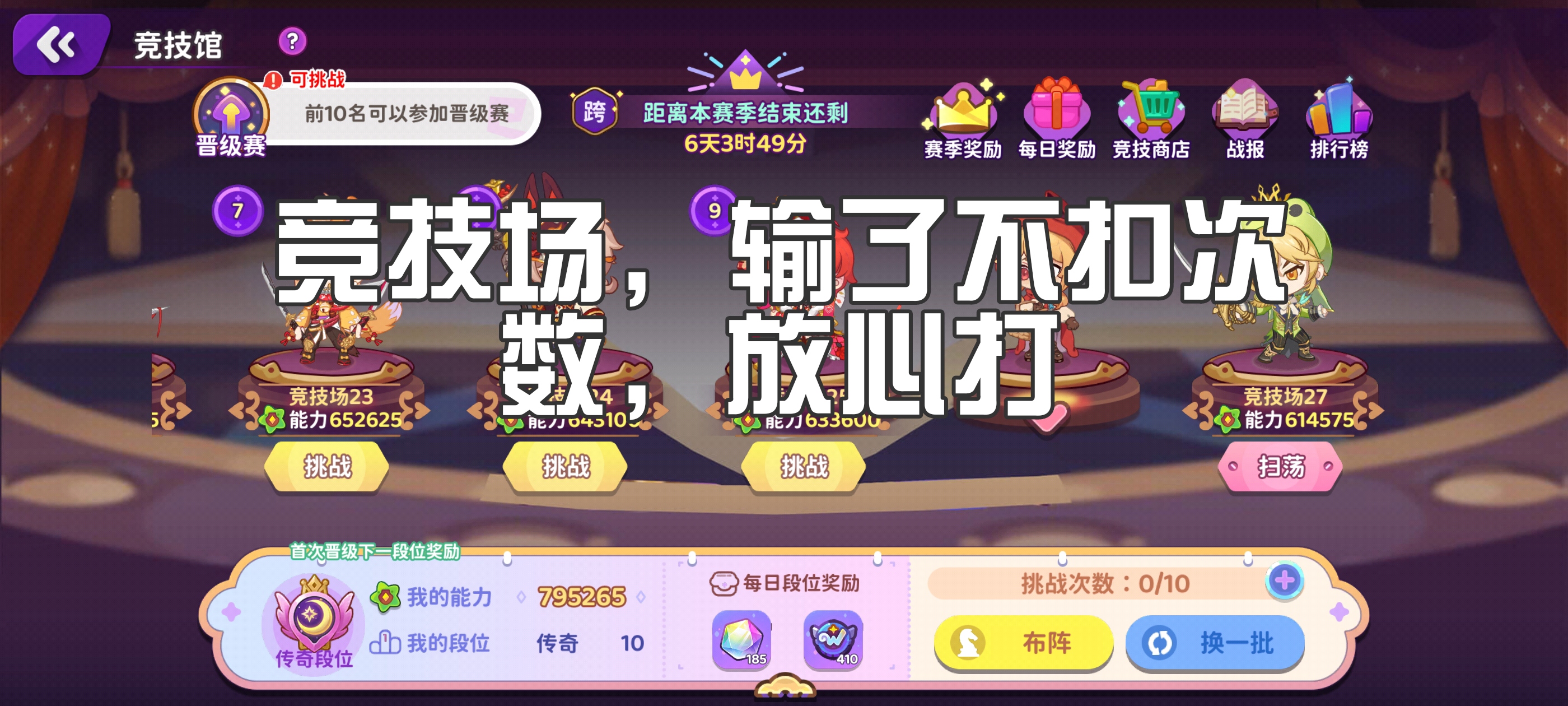 竞技场打不过多打几次,反正输了不扣次数。