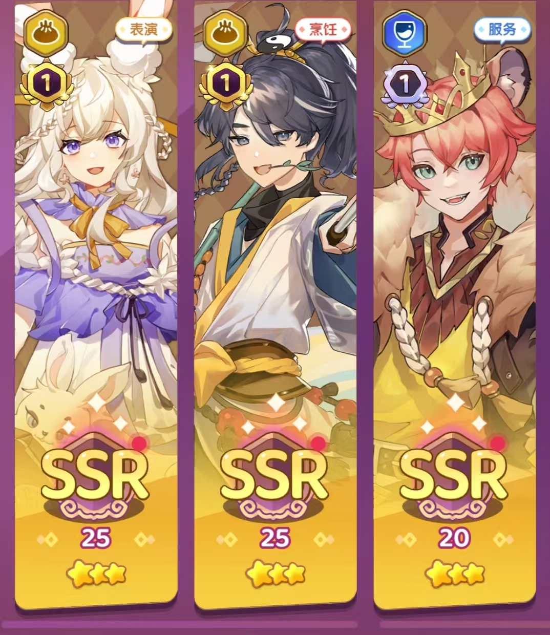 前期如果没抽到服务型的SSR,员工考核用姜子牙,嫦娥,青蛙童子就行,这时服务考核可能会稍难达标,我们可以通过经营计划→升级收银台来补一些服务属性。