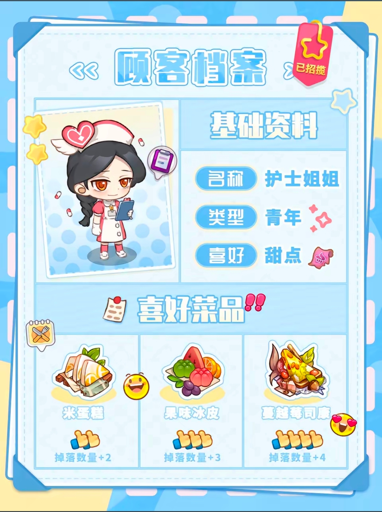 梦境食旅游戏中大家肯定觉得顾客没啥卵用,其实不然,升级顾客有很多益处,不但可以领取很多奖励,而且菜的价格还会随着顾客等级提升,还会提升收益评分!下面是小编给大家带来的《梦境食旅》顾客档案大全及烹饪百科攻略图分享。