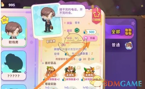 3、最后在顾客详情页内,点击升级,消耗货币即可提升顾客的等级;