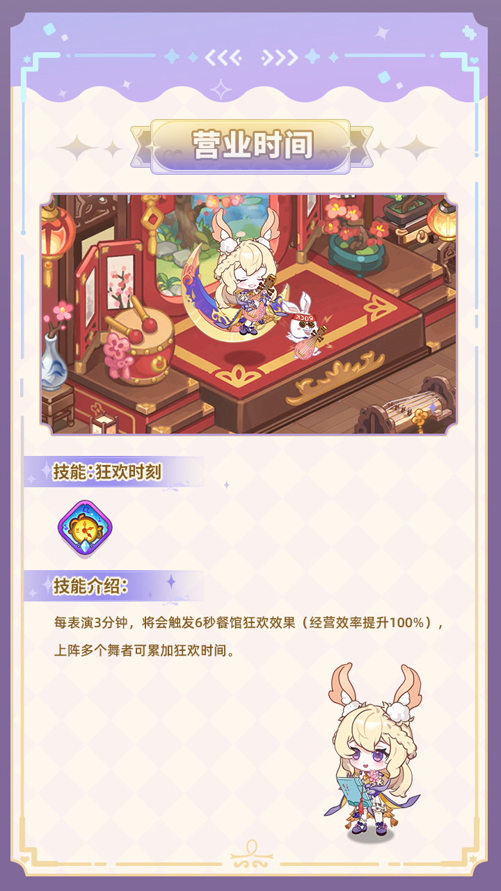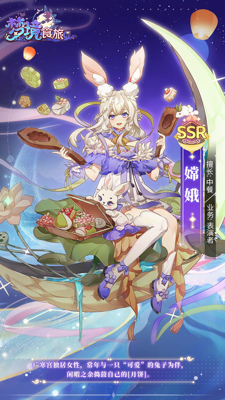 本次给大家带来了《梦境食旅》嫦娥员工图鉴,嫦娥是在广寒宫独居的女性,常年与一只“可爱”的兔子为伴,闲暇之余捣鼓自己的[月饼]。擅长餐品:中餐。擅长工作:表演者。在舞台表演期间,[少年顾客]就餐后,额外获得10%的收益。