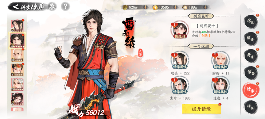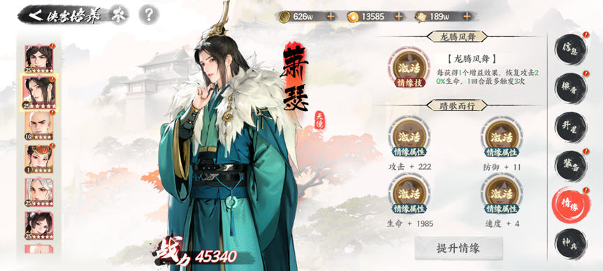 【江湖前缘】情缘属性,激活后可增加不同战斗属性。