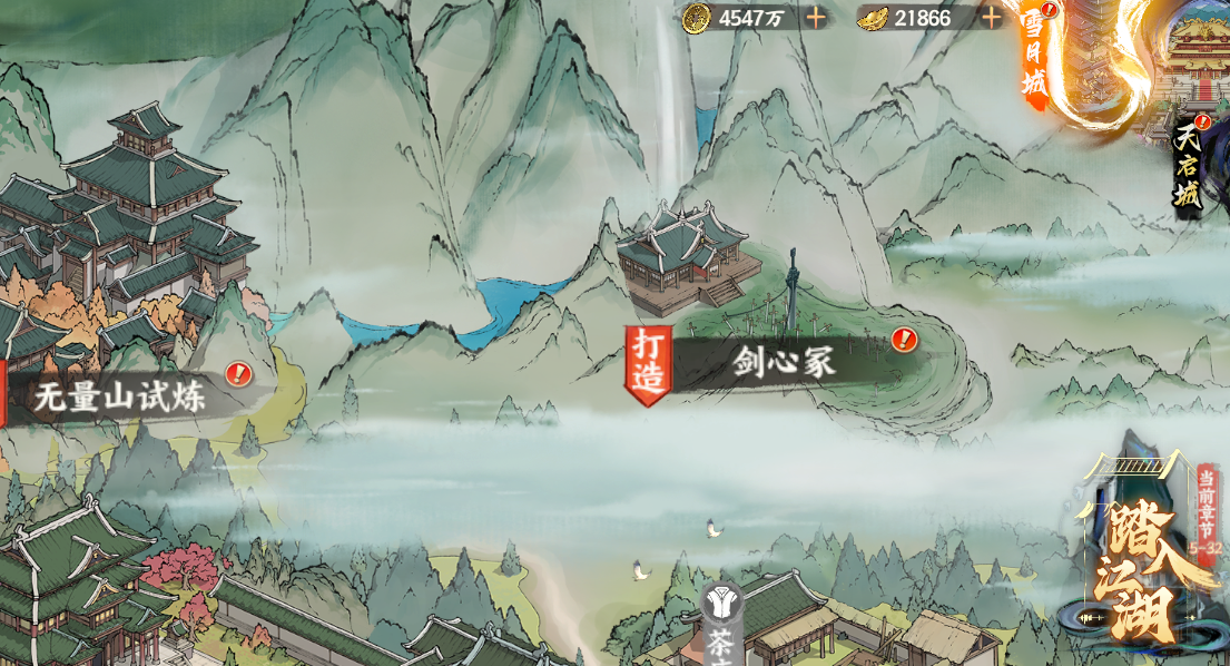 ●进入【雪月城】,点击画面右上角【剑心冢】图标即可进入剑心冢界面