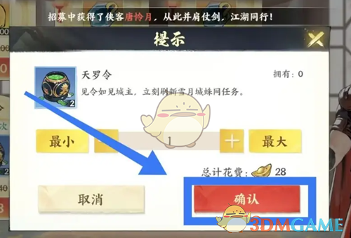 4、最后在提示页面中,花费28个元宝即可购买到天罗令道具了;