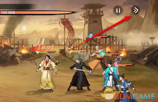 5、进入到战斗模式,可以等打完页可以点击右上角的跳过图标,根据伤害结算领取奖励。