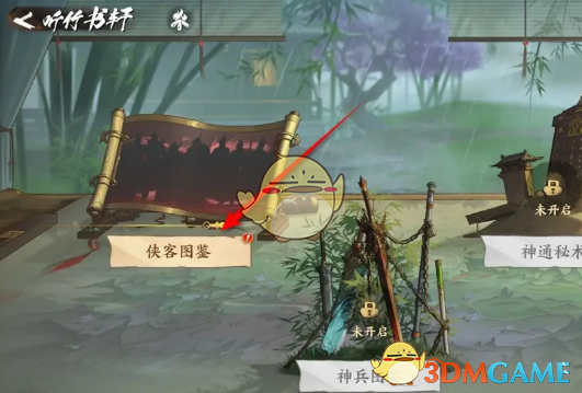 答:在听竹书轩点击侠客图鉴一键解锁后领取。