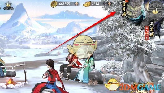 1、首先我们需要进入到游戏主界面,在右上角的位置点击雪月城进入。