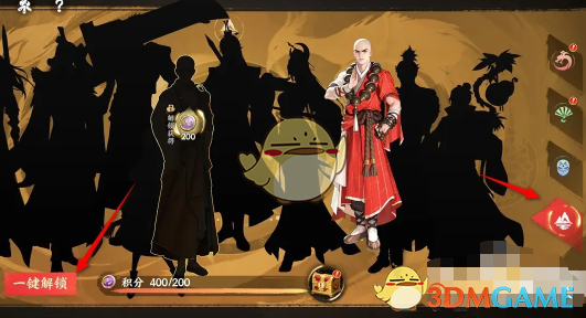 3、在听竹书轩页面点击第一个侠客图鉴,在点击左下角的一键解锁。