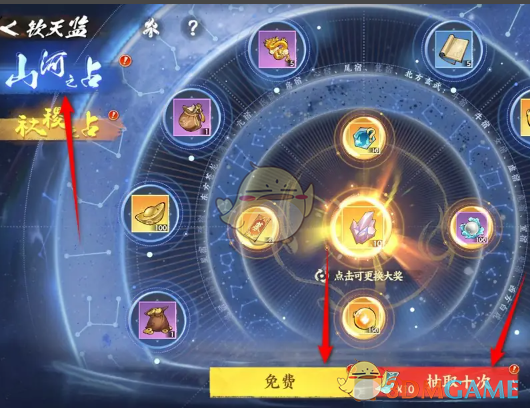 答:在钦天监山河之占界面选择大奖后再点击抽取。