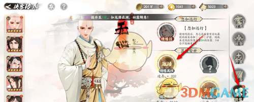 2、接着在侠客页面,点击侠客详情页的箭头按钮;