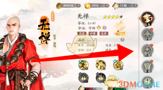 2、进入到无禅的侠客详情页面,点击右侧的升星栏目。