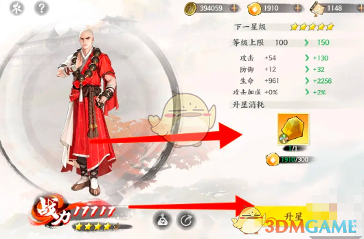 3、消耗一定数量的地魂碎片,点击右下角的升星即可将无禅升至五星。