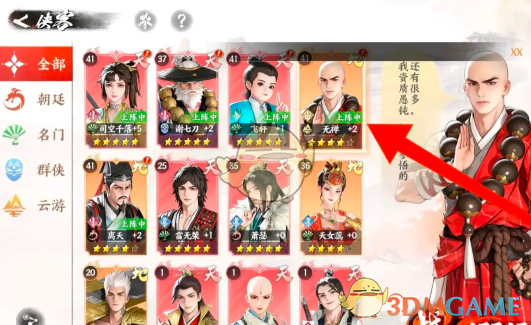 1、首先我们需要进入到游戏中点击侠客选择无禅。