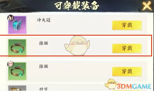 4、在可穿戴的装备页面中,点击抹额进行穿戴即可。