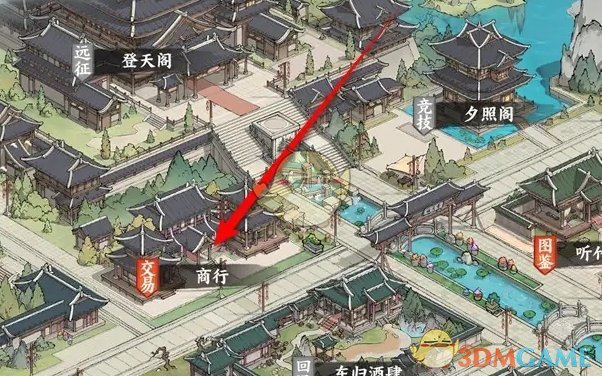 2、在雪月城中,找到并点击商行去到商店页面;