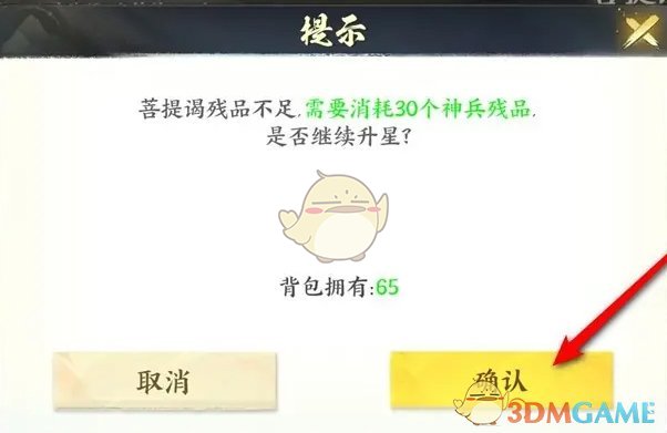 4、最后我们点击确认即可完成神兵的升星操作。