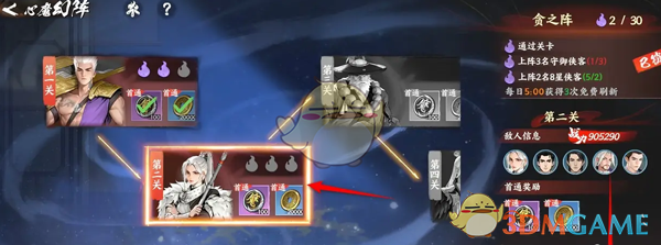 答:找到心魔幻阵选择章节关卡进行挑战,胜利后就可以开启新关卡了
