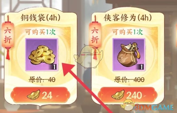 2、然后在商城页面点击铜钱袋进行购买;