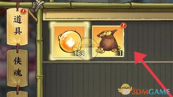 4、购买铜钱袋后,在游戏主页点击行囊选项;