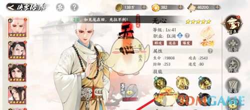 2、在侠客页面,选择需要查看的技能侠客,点击右侧的详情;