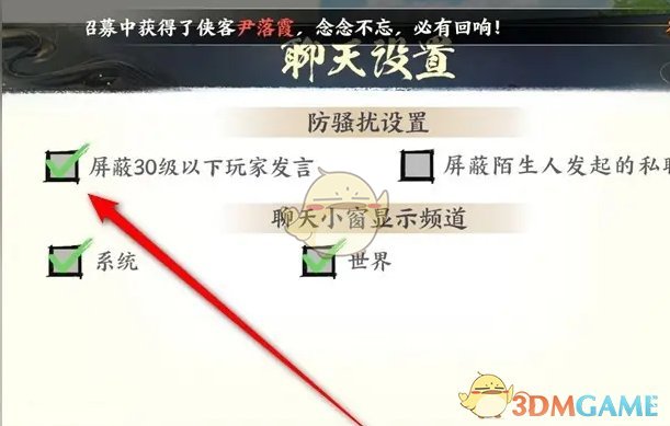 以上就是小编整理带来的《少年歌行风花雪月》屏蔽30级以下玩家发言方法,更多相关游戏攻略,请关注手游网!
