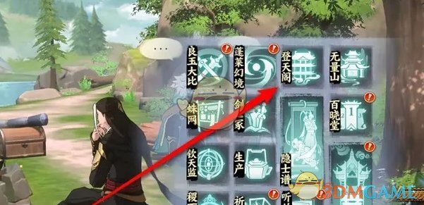 1、首先我们在主页菜单栏弹出的选项中,点击登天阁;
