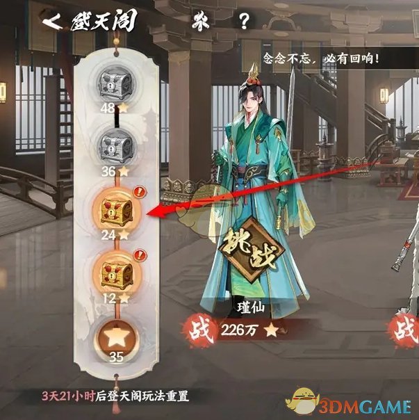 3、最后开启宝箱就可以领取登天阁的星级奖励了;