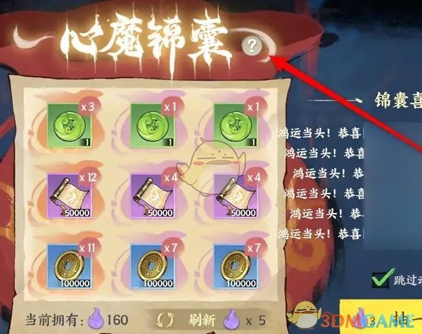 3、然后在心魔锦囊页面,点击右侧的问号进行查看;