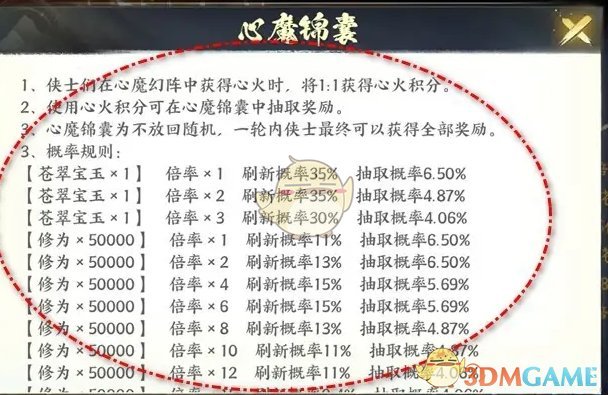 4、最后我们就可以查看到心魔锦囊页面内的概率规则了。