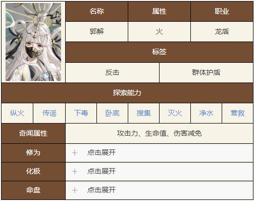 《如鸢》郭解是一位火属性的龙盾角色,擅长单体持续输出以及全体爆发,并且技能的灼烧效果可以无限叠加,在boss战中表现十分不错,但有的玩家还不知道如鸢郭解技能是什么,下面小编就给玩家们带来了如鸢郭解的技能天赋介绍。