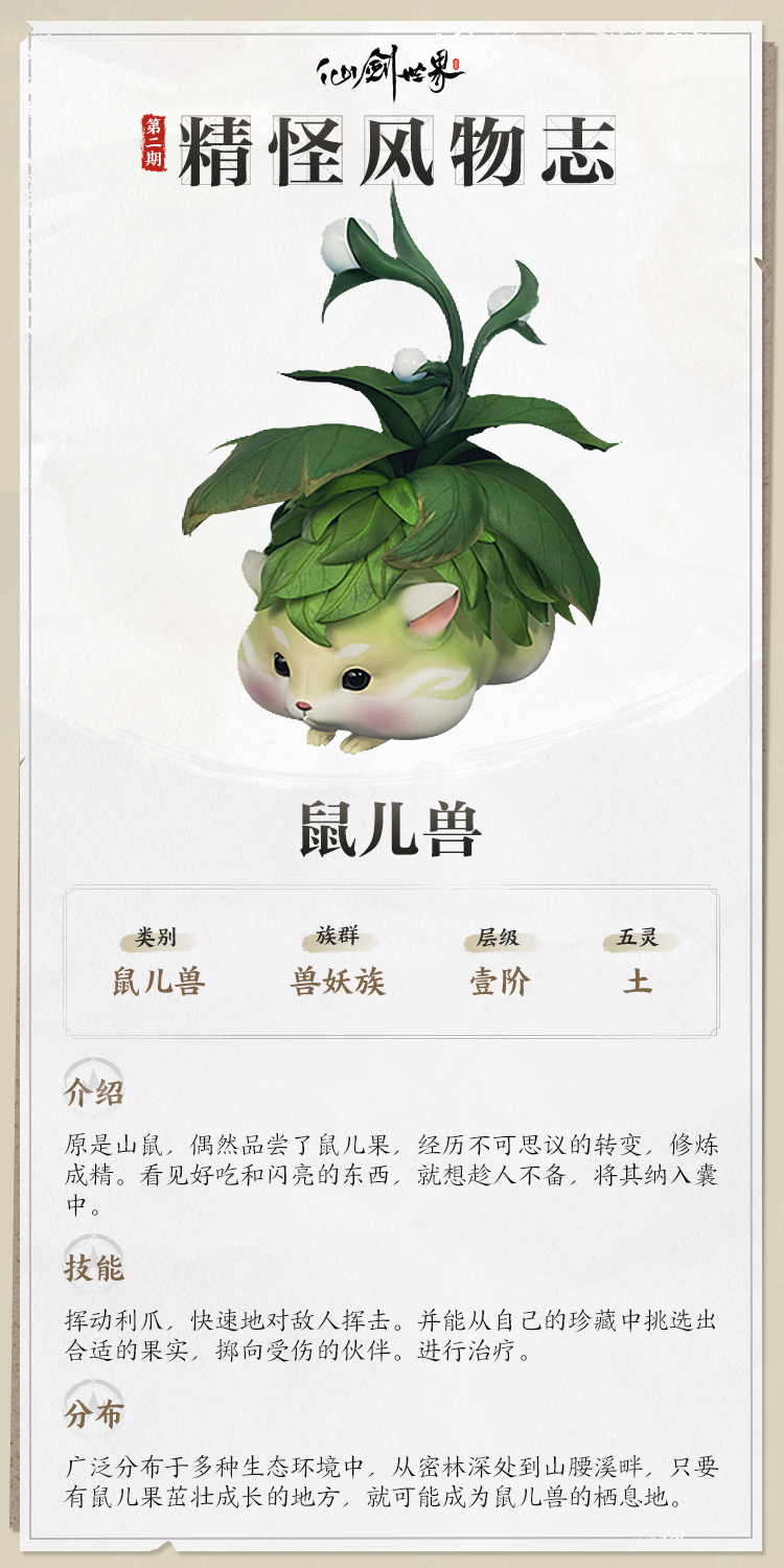「精怪风物志」仙剑万物,相伴相生——万物于此,志有所载。欲知诸精怪详情,仙友们可查阅此册。第一期特邀嘉宾来袭,它们现下正在仙剑世界中各显神通……而不论是何方神怪,都会被记载到这里!仙友若在探索途中遇到感兴趣的精怪,不妨告诉小仙,或许会被收录进下一期「精怪风物志」哦!