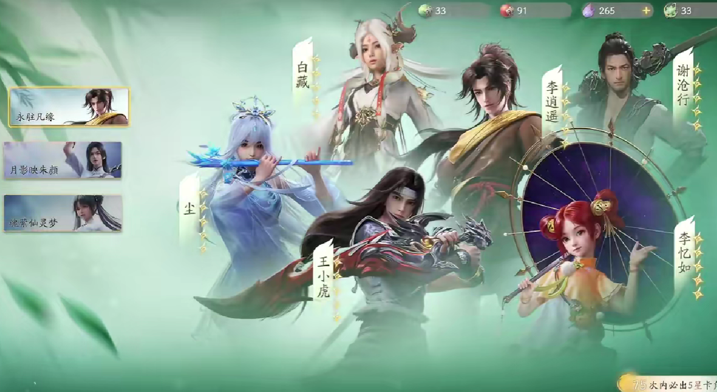 游戏当中的卡池种类实际上只分为两种,第一种是常驻卡池,第二种是限定卡池,常驻卡池的名称叫做永驻凡缘,这一类卡池是永久会存在的,并且面向新手玩家,会提供十次免费抽取机会,而新手玩家在前六十次抽取时,如若都并未获得仙级的侠客,那么游戏会自动给玩家补偿一个仙级侠客。