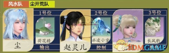 1、配队:尘+荷花精、赵灵儿+冰凌小童、花楹+长风豹。